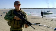 He leads a small team that rescues Chandler and Tex from the Russian ship and plants charges throughout the ship. (“Two Sailors Walk Into a Bar”)