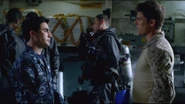 Chandler radios in to the Nathan James and gives a final order to cease all rescue operations in fear that the Russians will hone in on the Nathan James' position. Slattery refuses to give up the search. Ruskov realizes that Chandler is lost in the water somewhere and sends an aerial drone to search for them. Slattery’s officers detect the drone. As the drone approaches Chandler’s position, Slattery orders Lt. Kara Foster to fire a missile to destroy the drone. The drone is destroyed.